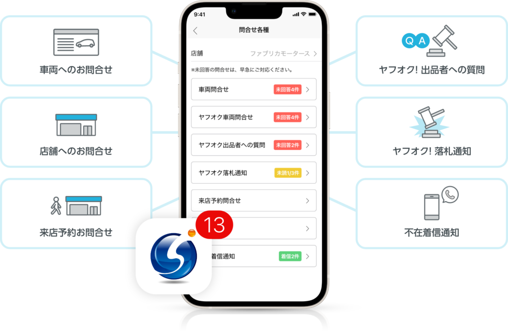 車選びドットコムやヤフオクなど、広告掲載した車両へのお問合せを「symphonyアプリ」で通知いたします。届いた通知からスピーディに回答できるため、お客様の興味度が高い状態でのご連絡が可能。販売チャンスを逃さず、成約率向上に貢献します。