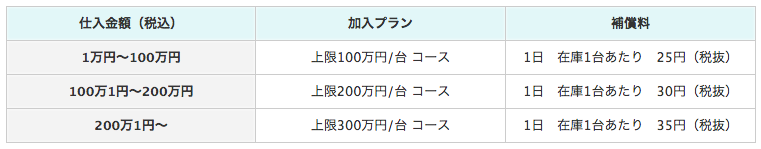補償される金額は仕入金額(税込)か加入プランのいずれか低い金額を限度として見舞金が支払われ、最高で1台につき300万円まで補償されます。
