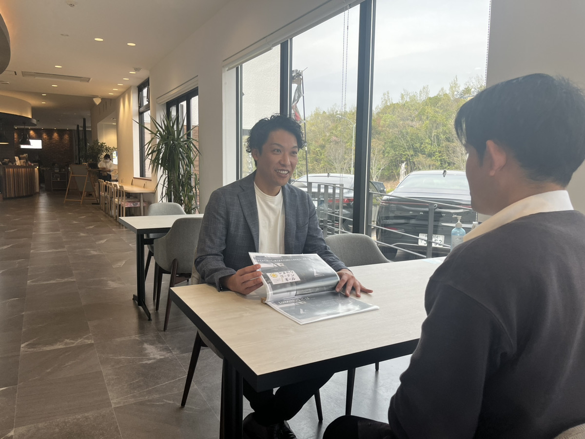 その取り組みの一環として、カフェやホームセンターなどカジュアルな商業施設と併設して店舗を構えるようにしています。そうすることで「日用品のショッピングの延長線上でクルマ屋さんに入ってみる」「カフェで一息ついて、何気なく展示してあるクルマを見てみる」といったように、お客様に気軽に訪れてもらえる店舗作りを心掛けています。