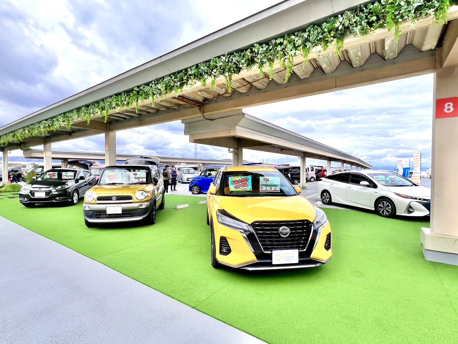 「中古車販売」や「買取」などの看板はあえて出さず、店舗への入りやすさを重視しています。