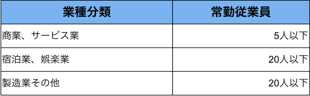 小規模事業者の定義は以下の通りです。